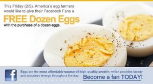 On Friday 2/5, the first 30,000 fans will get a coupon good for a free dozen eggs with a purchase of a dozen eggs. I am guessing this one will go very fast!!