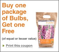 So many of you ask me about saving money at places other than the grocery store…well I was going through my inbox when I noticed my email from the Home Depot Garden Club. I had planned to go buy some bulbs to force in a few glass jars this weekend. Well–now I will get a deal as I received a BOGO bulb coupon from Home Depot–PERFECT!! More money in my pocket–you can go HERE to sign up for their newsletters to get your own coupons (I would share but these are user specific 🙂 )