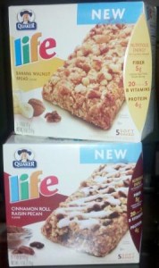 I love to try new products.Β When the folks at Quaker contacted me about trying a new product I was more than happy to give it a whirl!Β I was not sure what to expect…I thought it might be a new flavor of oatmeal or maybe a new cereal.Β I have to tell you I was very pleased to find that they had sent meΒ Life Soft Baked Nutrition Bars For Adults in two flavors: Banana Walnut Bread and Cinnamon Roll Raisin Pecan.