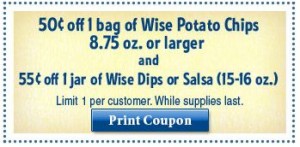 This coupon may be specific to my email address…so if you are unable to print just head over to the Wise Snacks page and join their email club for your own coupon (or check your email).