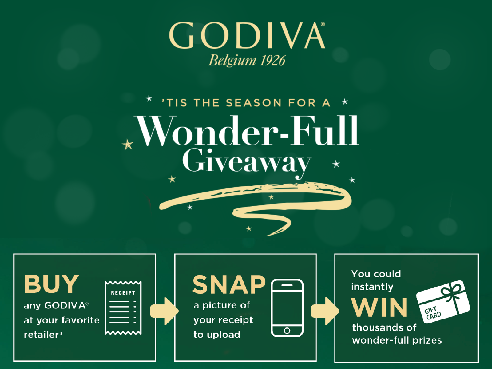 This promotion is perfectly timed for, well…. the most wonderful time of the year! Whether you’re buying for yourself or thinking of someone special, all you have to do to enter is purchase any GODIVA product, snap a picture of your receipt, and upload it to GODIVA Wonder-Full Giveaway page.