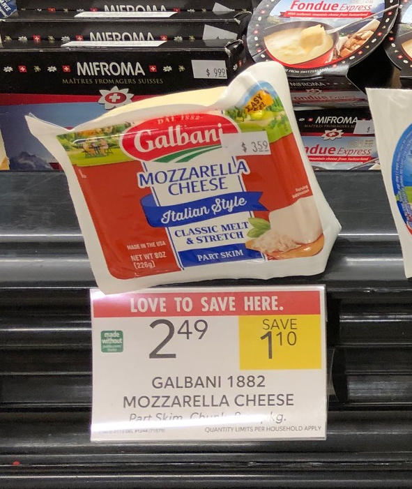 Galbani Mozzarella Cheese, Part Skim, 8 oz, $2.49 (reg $3.59)