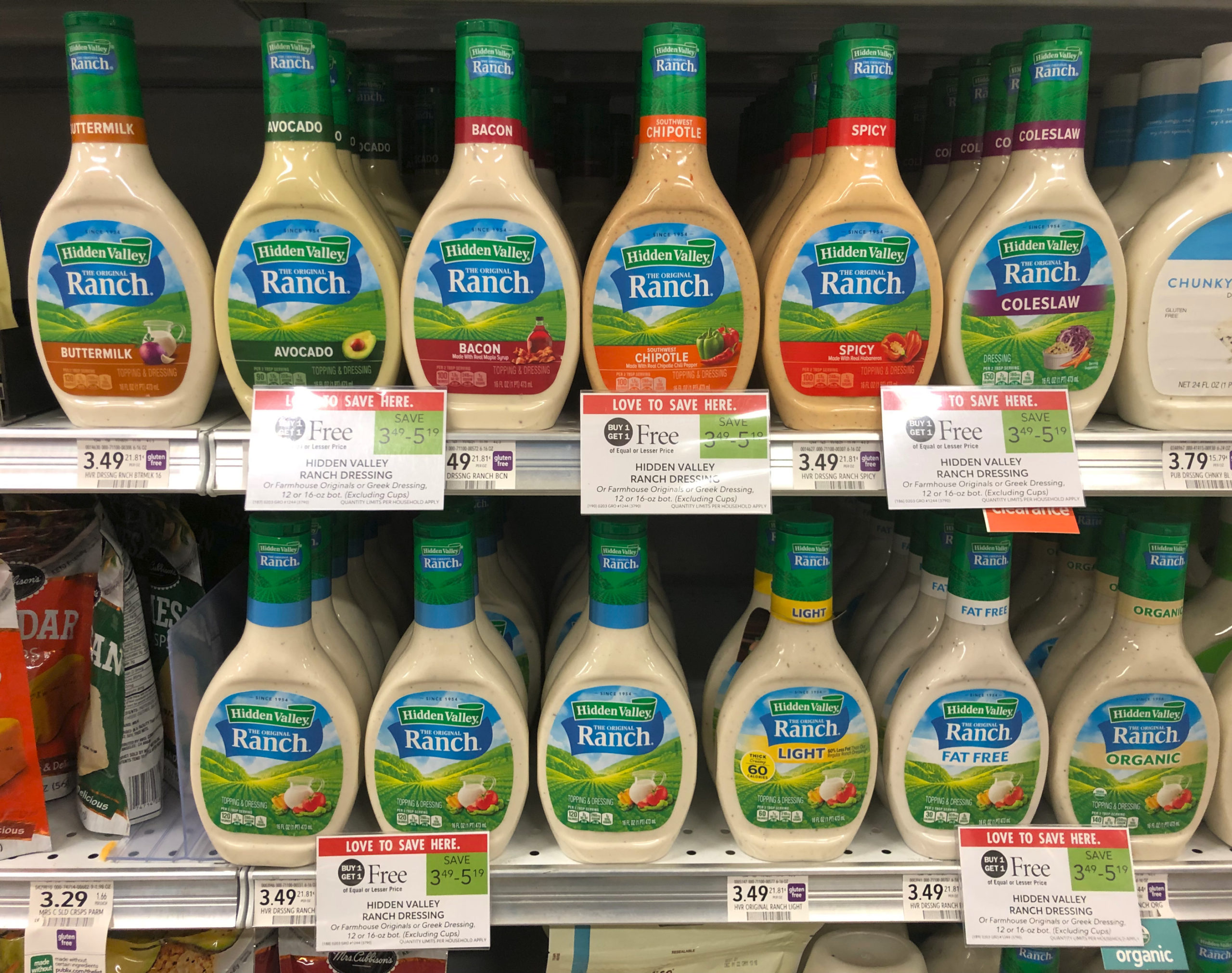 –$1/2 Hidden Valley Secret Sauce or Original Ranch bottles, OR Dry Dip Mix, any variety (Publix Digital Coupon)