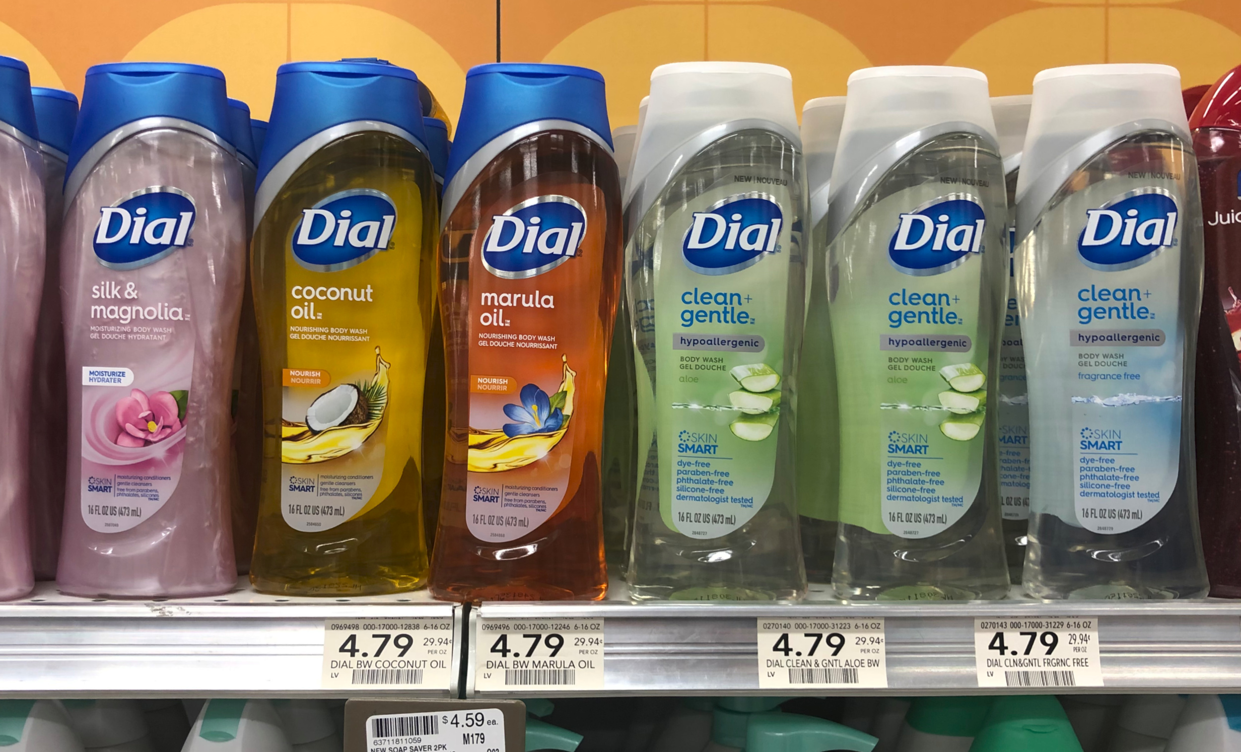 Dial Body Wash, 14 to 18 oz, $4.79